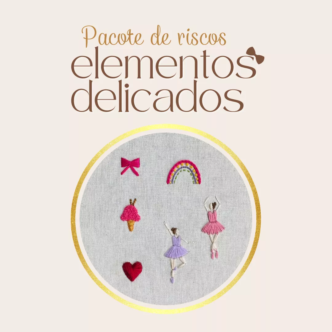 Aprenda a bordar diferentes estilos de riscos em um só pack. Domine o bordado e crie peças incríveis com aulas práticas e instruções detalhadas. Riscos para deixar seus Laços de Tecido ainda mais encantadores.